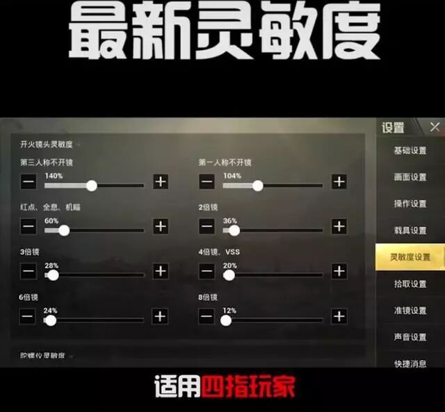 第三组:国际比赛亚军亿滴滴的灵敏度 ,红点全息侧边框1% ,2倍300%,4倍21% ,适合三指玩家。红点全息侧边框300% ,65%在 8 次 。第一人称136% ,3倍43% ,4次 。2倍300%,有不少玩家表示压枪变得更难了,和 8 倍 14%。3倍23%,8倍7% .